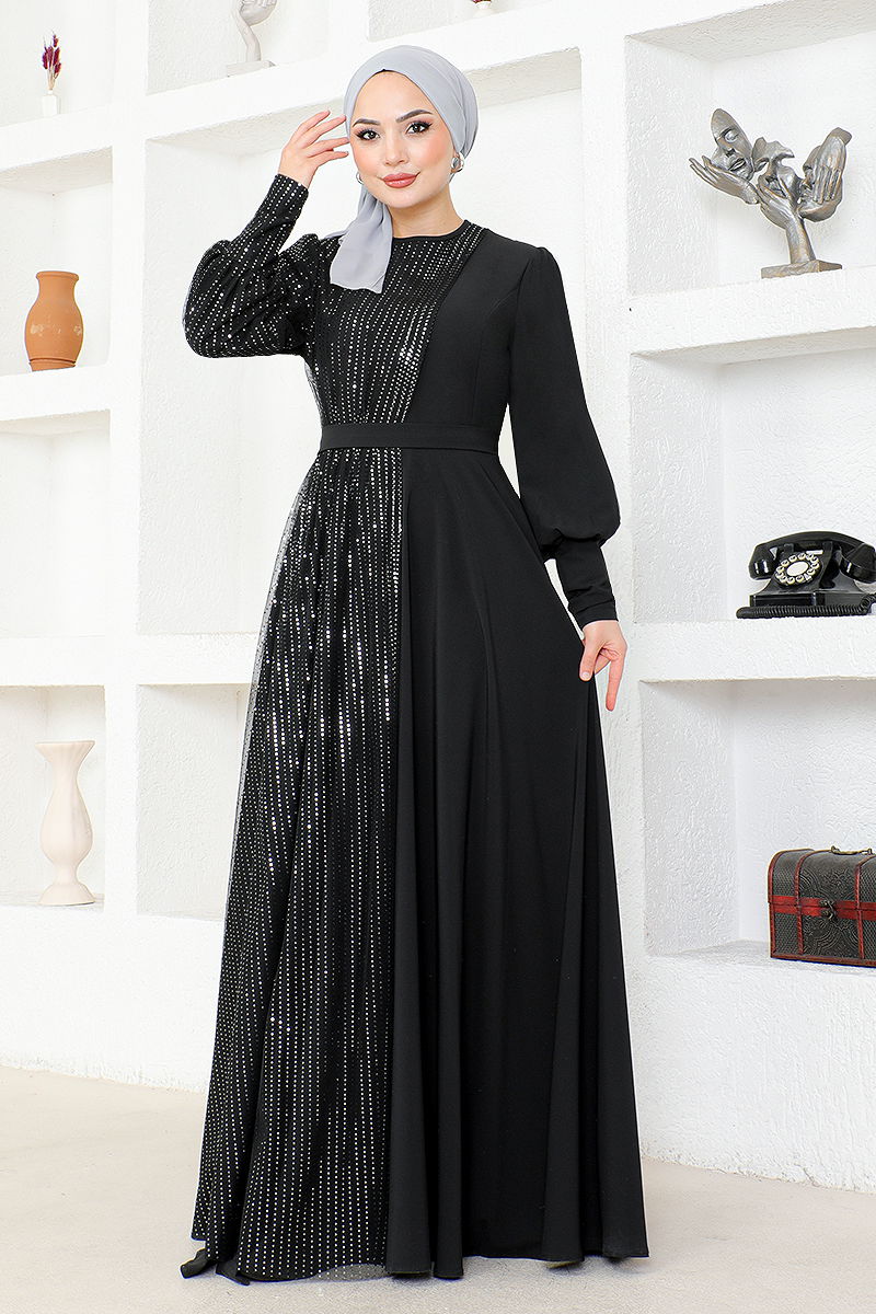 Evening Dresses with Glitter Transition ASM2703-M Black