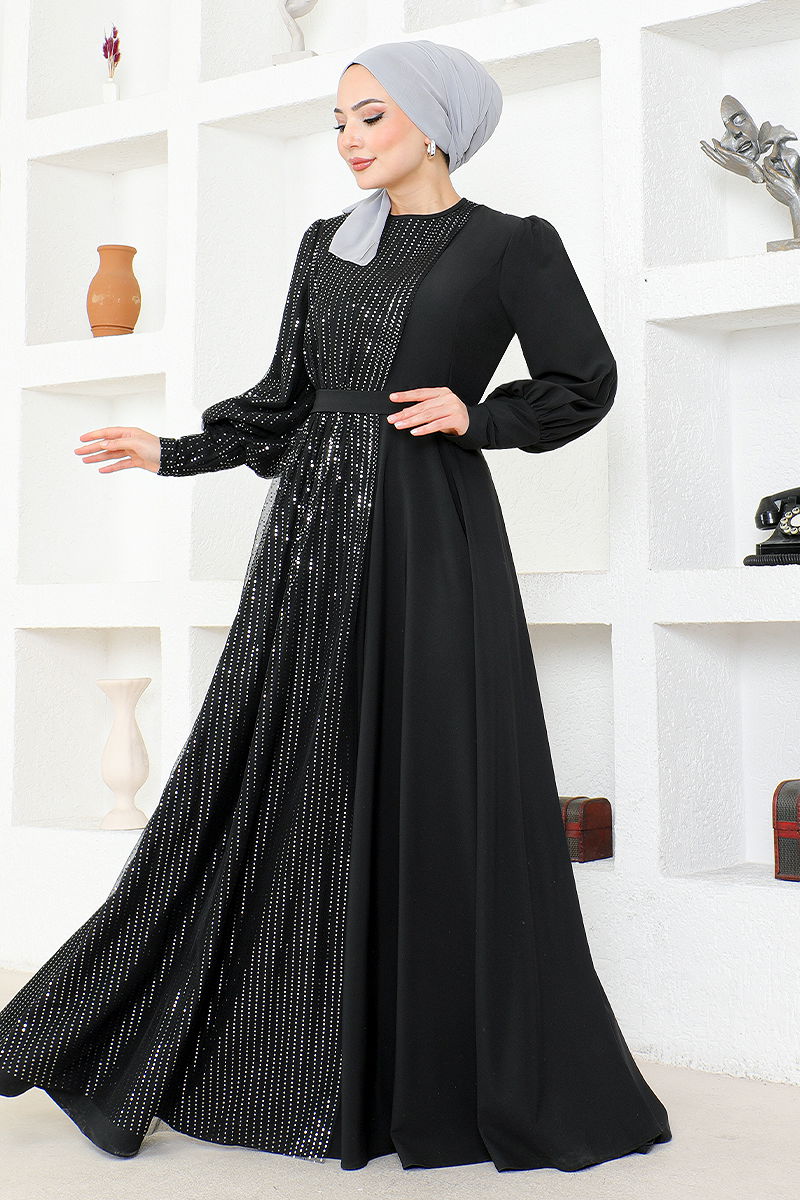 فستان سهرة انتقالي لامع أسود