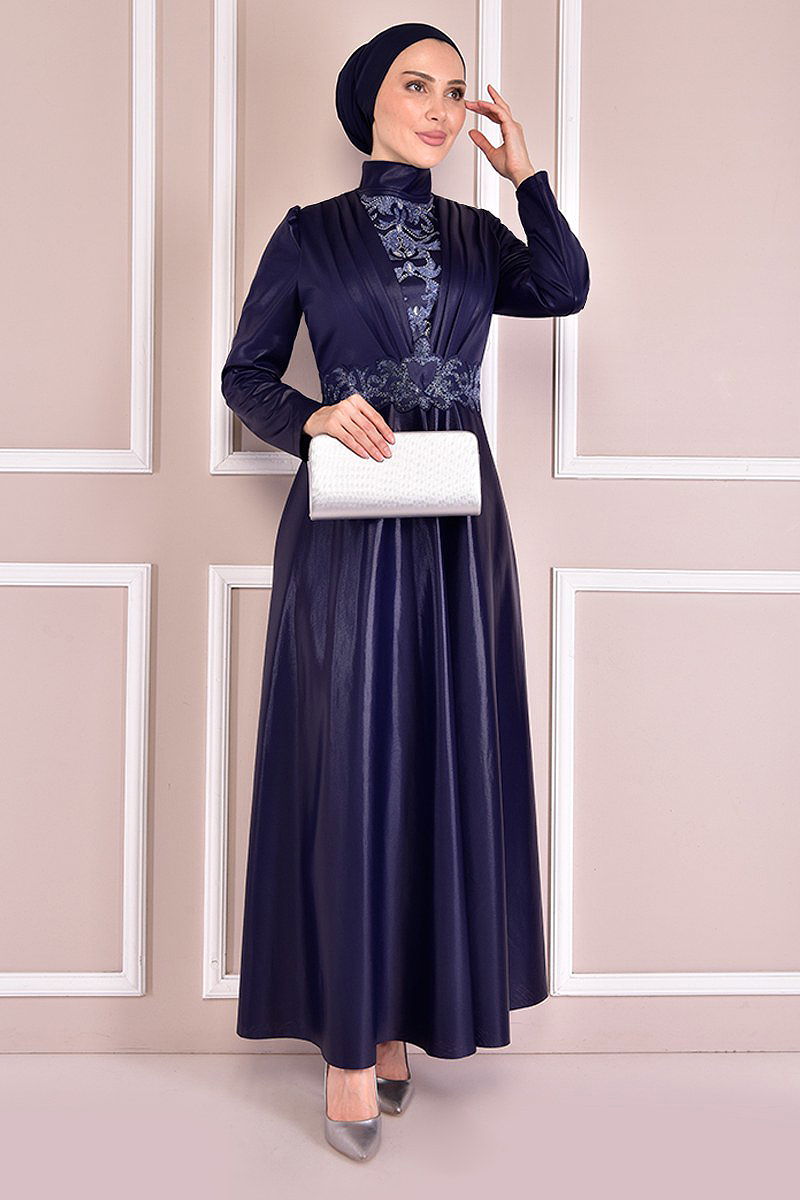 فستان سهرة مع حزام مطرز بالحجر النيلي