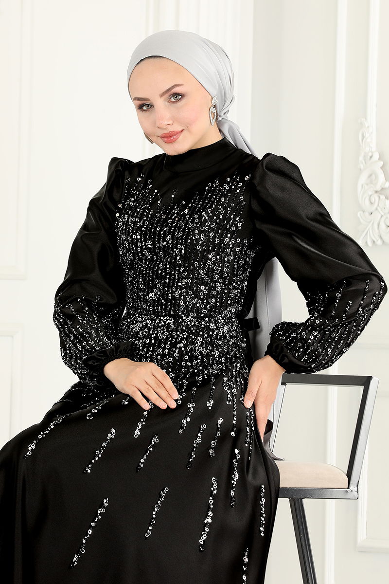 Fabric Property: Made of satin fabric.It can be used in four seasons.Product Feature :It is a new season hijab style product. (Unlined.)Sand-up CollarIt has a functional back zipper.The belt is sewnElastic cuff.Stones are sticked on.Sequins are stickedThere may be a tonal difference in the product color due to the concept shots.