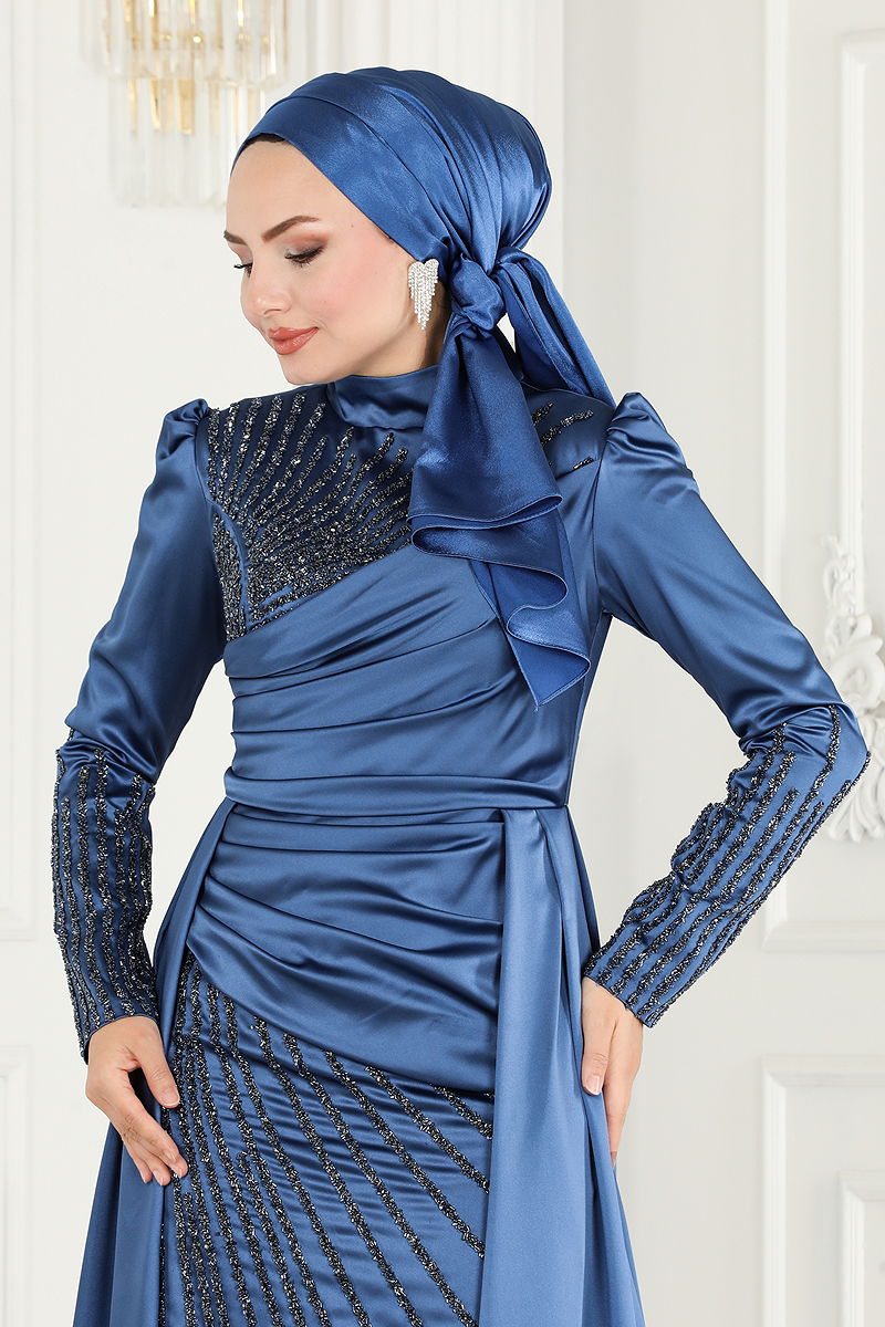 Fabric Property: Made of satin fabric.It can be used in four seasons.Product Feature :It is a new season hijab style product. (Unlined.)Half stand-up collarIt has a functional back zipper.Stones are sticked on.There may be a tonal difference in the product color due to the concept shots.
