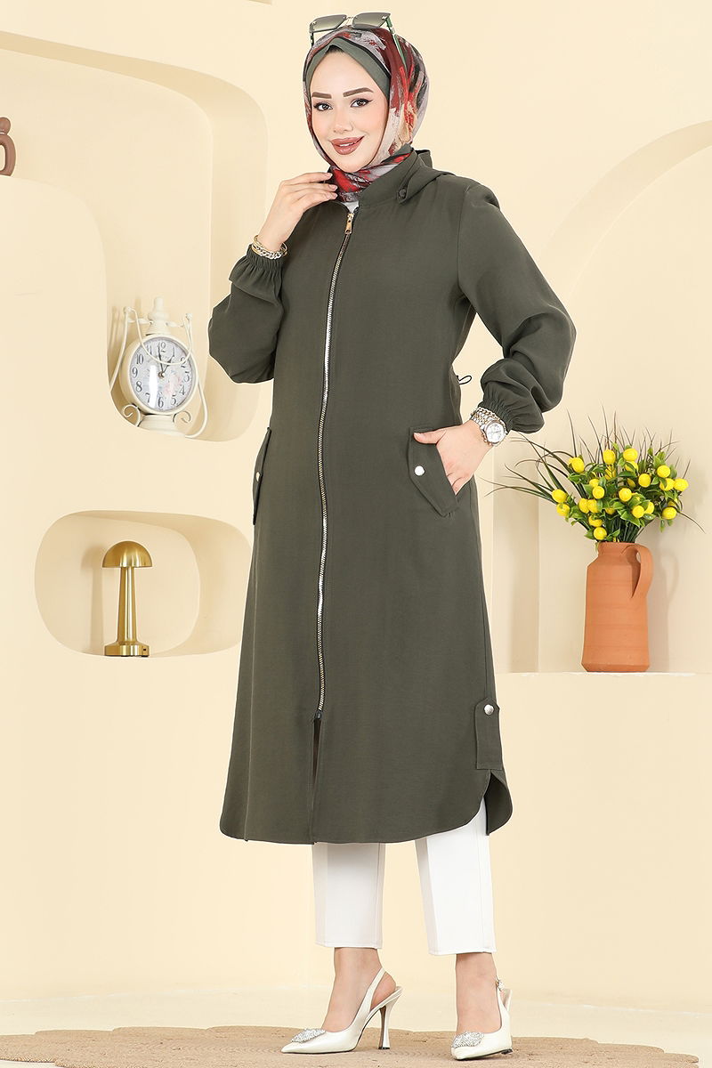 Fermuar Detaylı Kapüşonlu Kap 3028DFL152 Haki