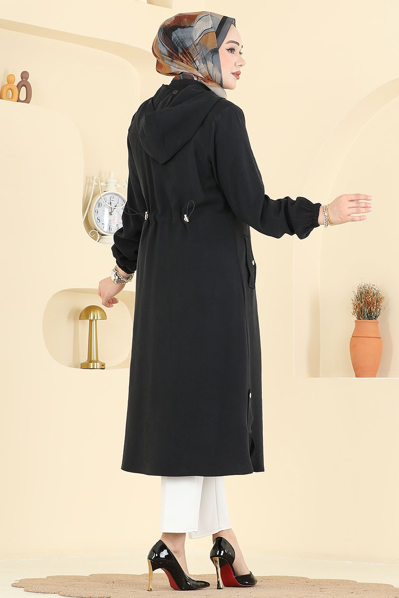 Fermuar Detaylı Kapüşonlu Kap 3028DFL152 Siyah