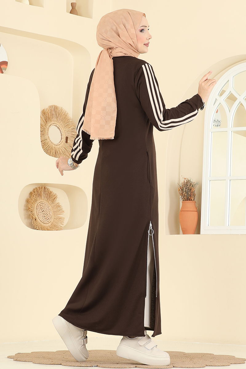 Fermuar Yırtmaçlı İki İp Ferace Kahve