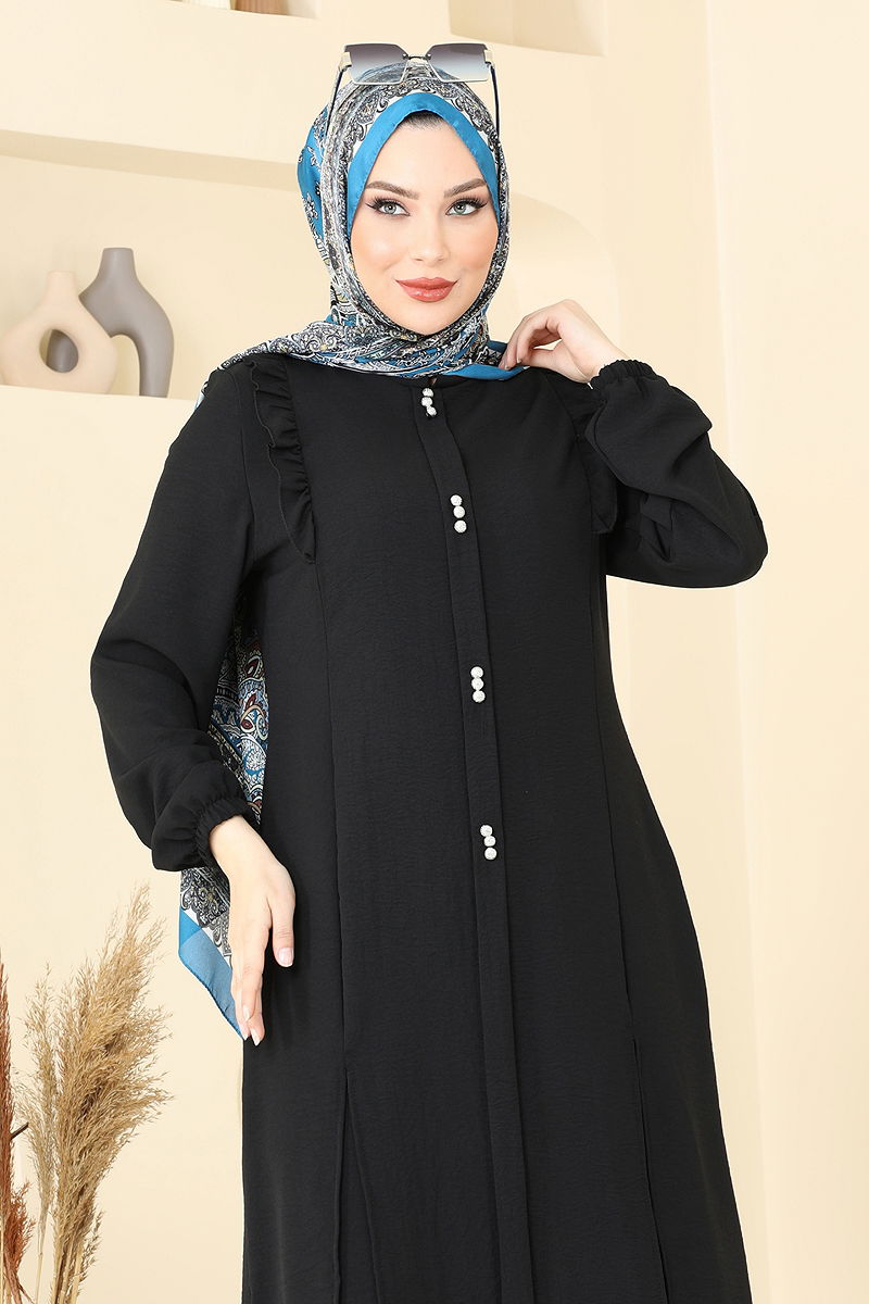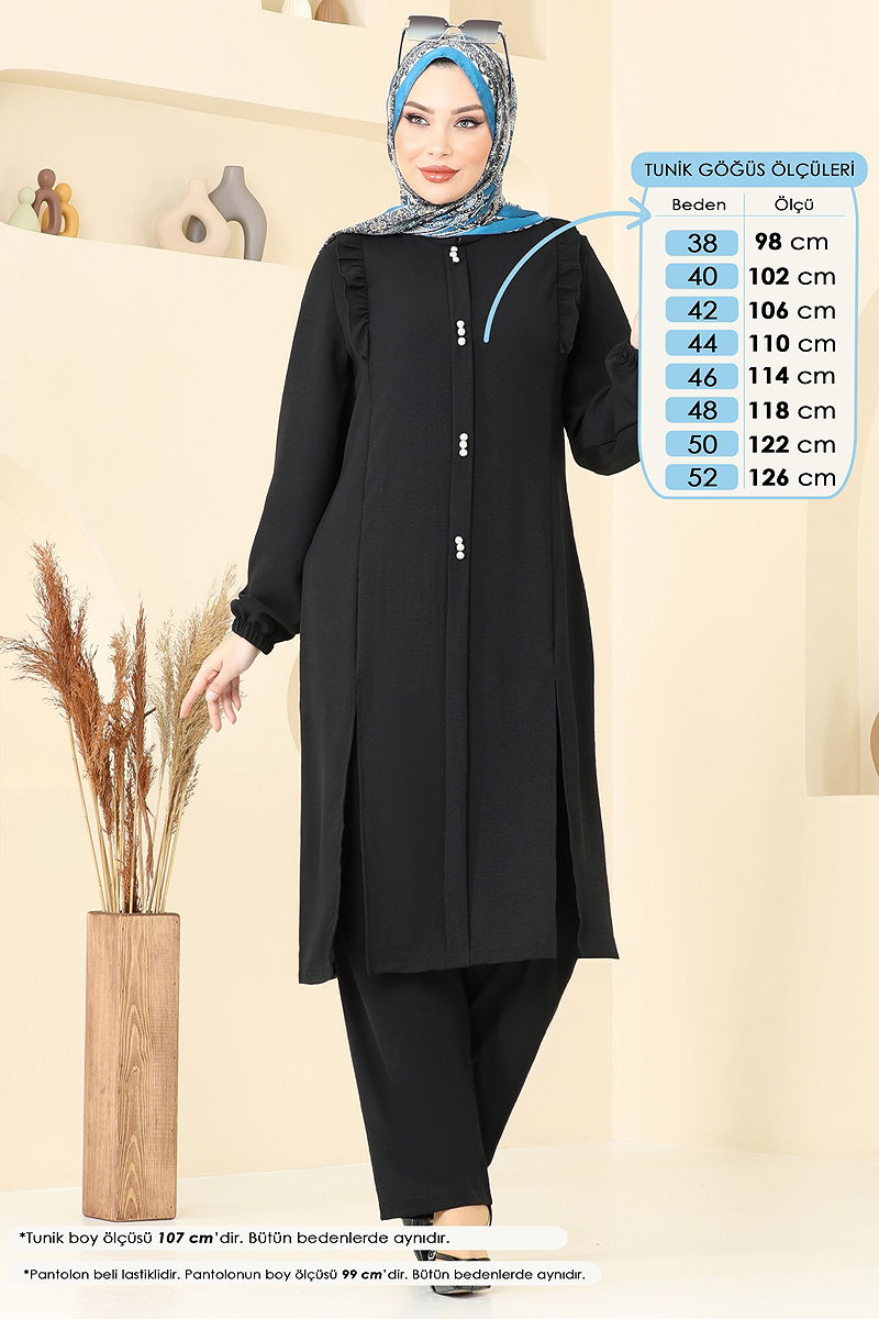 Fırfır Detay Tesettür Takım Siyah