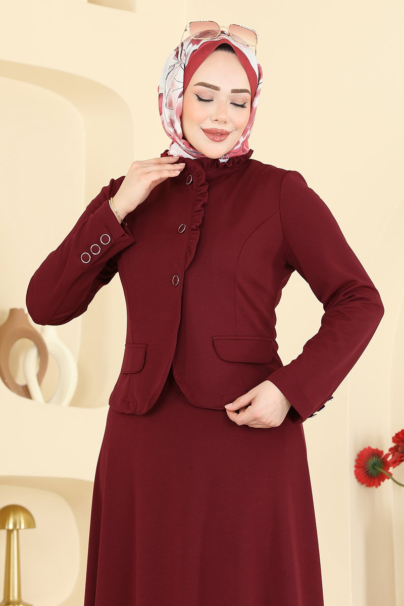 Fırfır Detaylı Etekli Takım 2857SL432 Bordo