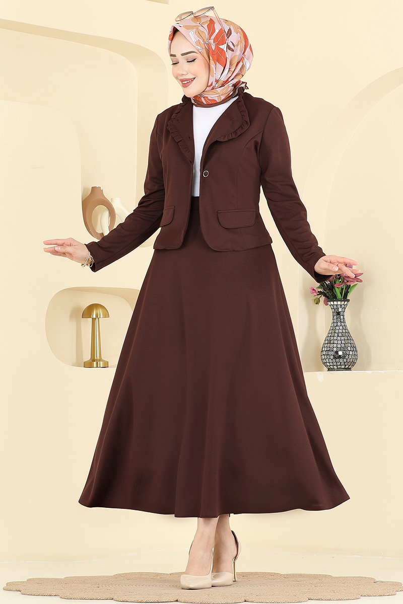 Fırfır Detaylı Etekli Takım 2857SL432 Kahve