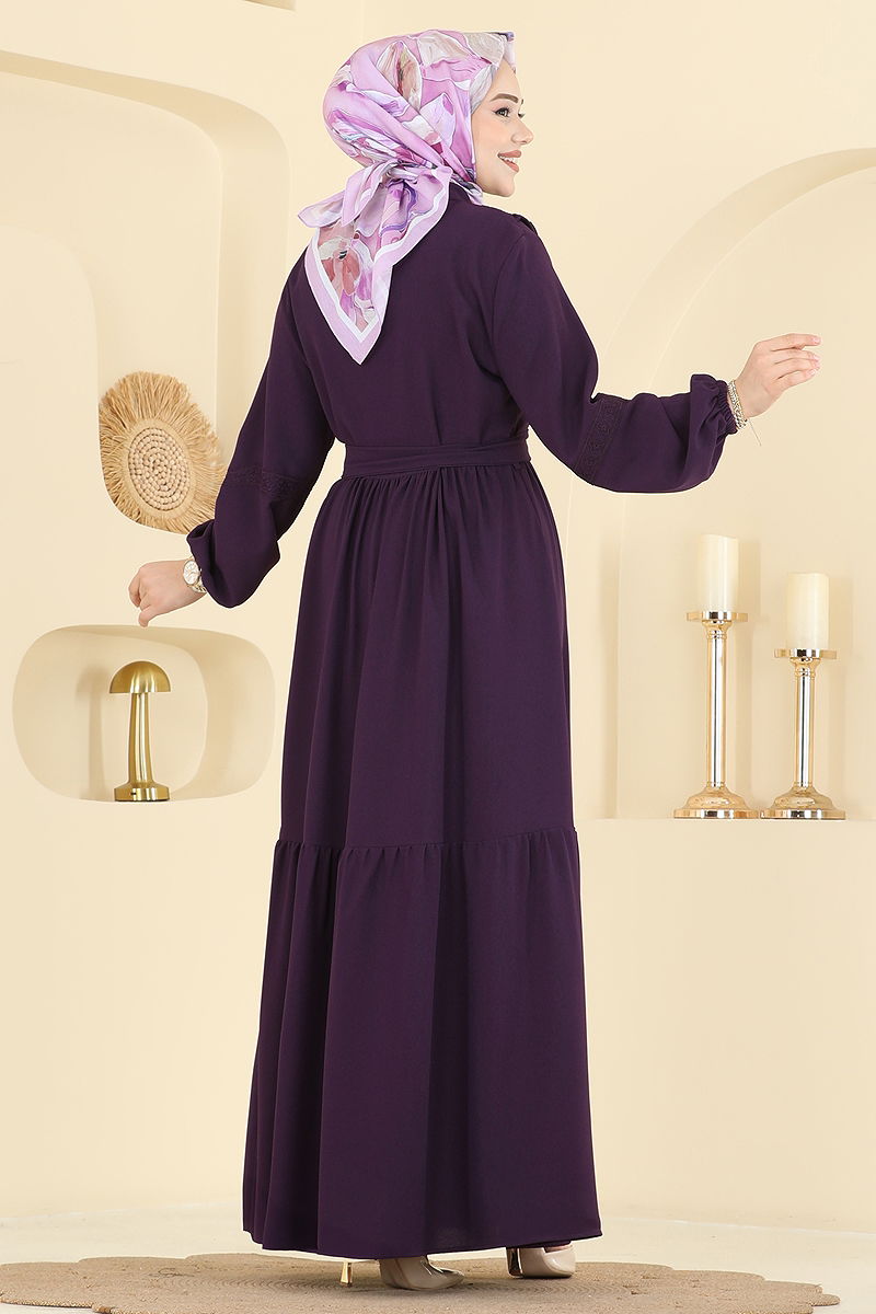 Fırfır Detaylı İthal Krep Elbise dört mevsim rahatlıkla kullanılabilir. Hassas yapısıyla 30 derecede yıkanabilen bu tesettür elbise, ithal krep kumaştan üretilmiştir. Yarım hakim yaka ve ön yüzünde yarım düğme detayına sahip bu şık elbise, astarsızdır. Manşeti lastikli olan ürün, beli dikişli ve kemer detayı ile tamamlanmıştır. Kemer, iki ucu dikilmiş şekilde tasarlanmış olup, orta kısmı dikişsiz bırakılarak dalgalanmanın önüne geçilmiştir. Kemer ürüne dahildir ancak kullanımı isteğe bağlıdır. Bu zarif ve fonksiyonel elbise, her gardırobun vazgeçilmezi olacak.