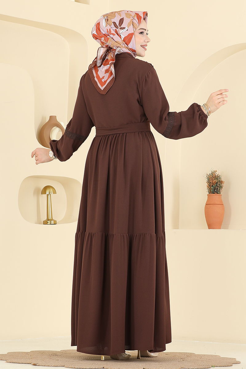 Fırfır Detaylı Krep Elbise 318ASN888 Kahve