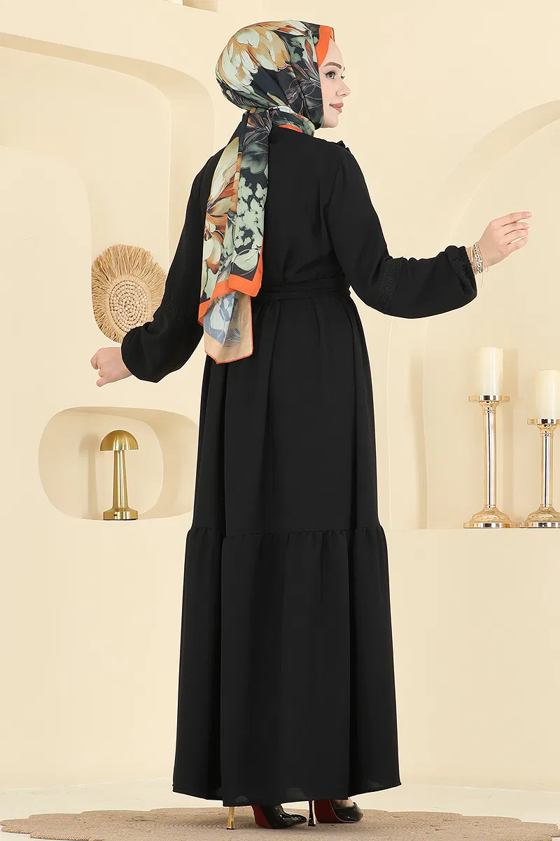 Fırfır Detaylı Krep Elbise Siyah