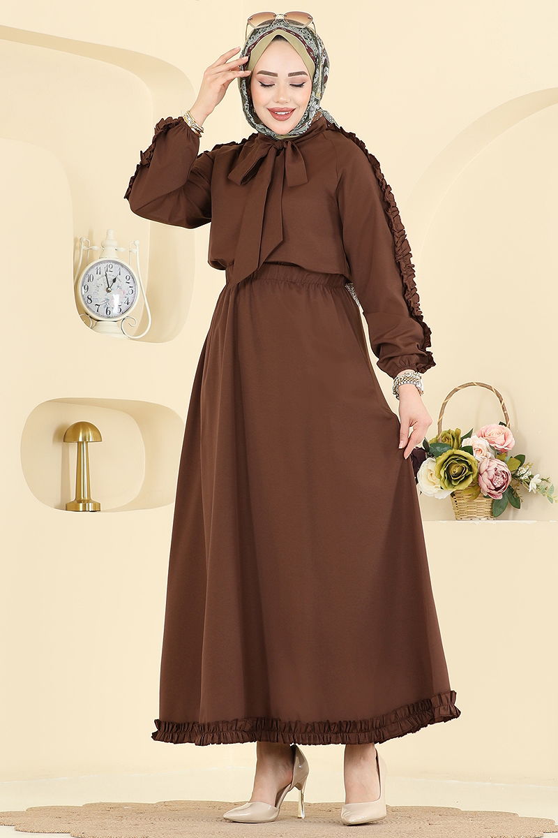 Fırfır Detaylı Terikoton Takım 0847LVA1173 Kahve