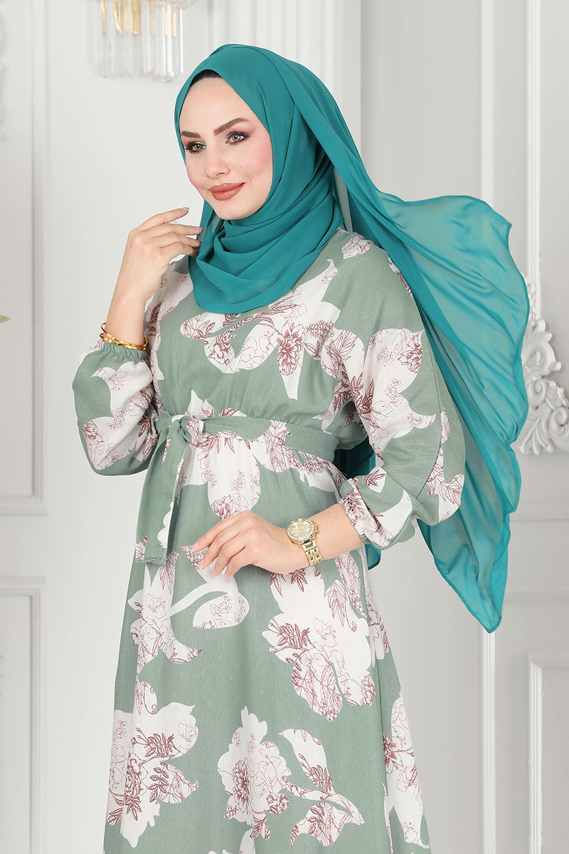 Product Feature : It is a new season hijab fashion product. The product has a Cycling collar. The product has from the back buttons. Unlined. Belt included, optional not available. Waist and cuffs are elastic There may be a tonal difference in the product due to concept photo shoots.
