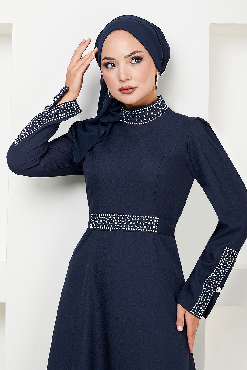 المنتج لديه ياقة نصف بيضوية. المنتج به سحاب في جزء من الخلف. يتم لصق الحجارة. الحزام متضمن، ،يمكن استخدامها حسب الرغبة أزرار الكفة نشطة. قد يكون هناك اختلاف في الدرجة اللونية في المنتج بسبب التقاط الصور الفوتوغرافية.