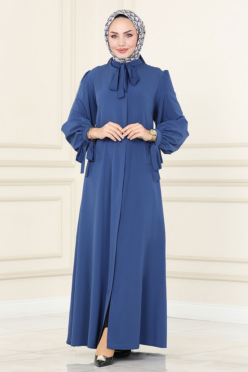 Fular Yakalı Krep Ferace İndigo Özellikleri