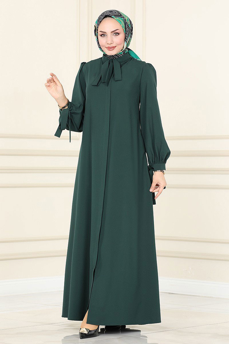 Yandan Bağcıklı İki İplik Elbise 2029FON792 Zümrüt