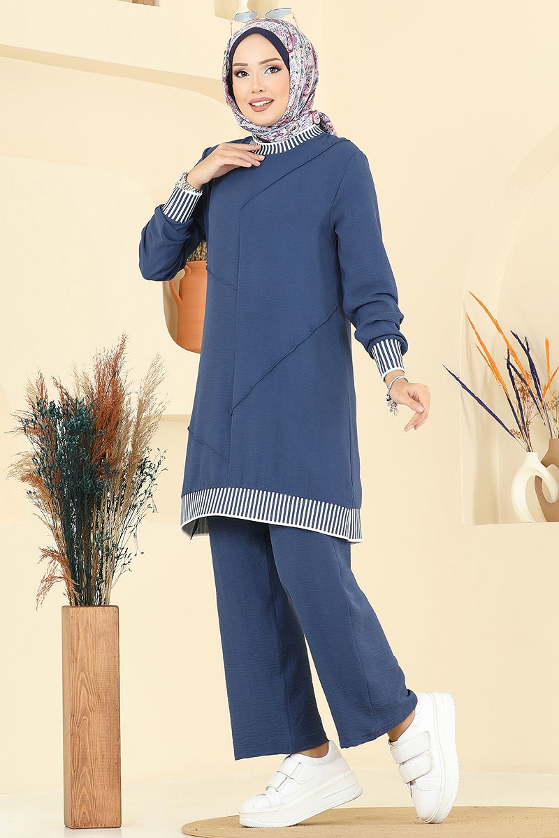 Garni Detay Aerobin Takım , dört mevsim rahatlıkla kullanabileceğiniz bir tesettür ürünüdür. Özel Aerobin kumaşı sayesinde hafif ve nefes alabilen yapıya sahiptir. Hassas 30 derecede yıkama imkanı sunar. Model bisiklet yaka tasarımına sahip olup, astarsızdır. Elbise kafadan geçirme şeklindedir ve pantolonun beli lastiklidir. Hem şık hem de konforlu bir kullanım için idealdir. (Modelin üzerindeki ürün 38 bedendir.)