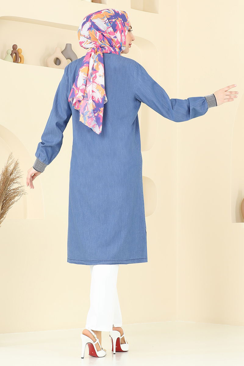 Garni Detay Kot Kap, dört mevsim boyunca rahatlıkla kullanabileceğiniz şık bir tesettür giysisidir. 30 derecede hassas yıkama koşullarında yıkanabilen bu ürün, tensel ve kot kumaşın kaliteli birleşiminden üretilmiştir. Hakim yaka tasarımına sahip olan Kot Kap, yırtmaç detayı ile modern bir görünüm sunar. Ürün astarsızdır ve pratik kullanım için ön yüzünde çıtçıtlar ve cepler bulunmaktadır. Her ortamda şıklığınızı korumak için ideal bir seçim.