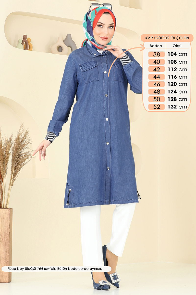 Introducing the Garni Detail Denim Jacket, a stylish modest wear suitable for all seasons. This piece can be washed at 30 degrees on a gentle cycle. It is made from a high-quality blend of Tencel denim fabric. Featuring a mandarin collar design, this jacket offers a contemporary look with its slit detail. It is unlined and equipped with practical snaps and pockets on the front for convenience. An ideal choice to keep your elegance in any setting.