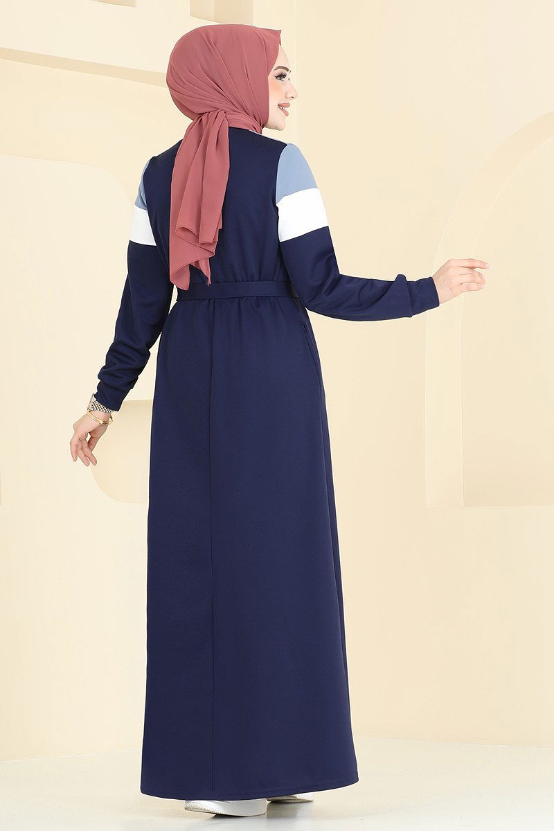 Garni Detay Tesettür Elbise Bebe Mavisi&Laci