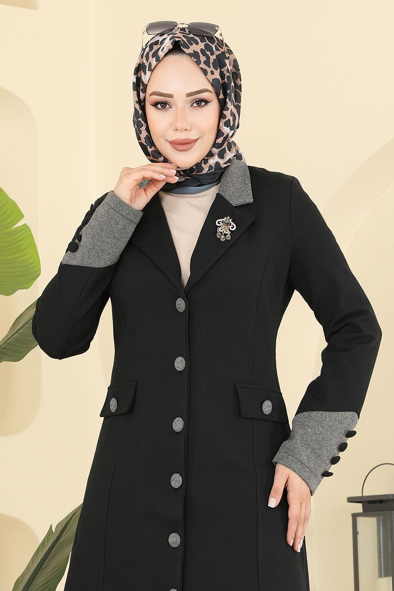 Garni detaylı Tivit Takım KOMBİN modelimiz, tesettür giyimine özel tasarlanmıştır. Sonbahar ve kış ayları için ideal olan bu ürün, hassas yıkama modunda 30 derecede yıkanabilir ve tivit kumaştan üretilmiştir. Kruvaze yaka ve ön düğmeli tasarımı ile şık bir görünüm sunarken, astarsız yapısı ile rahat bir kullanım sağlar. Pantolonun bel kısmı lastikli olup, cepler ve manşet düğmeleri zarif aksesuar detaylarına sahiptir.