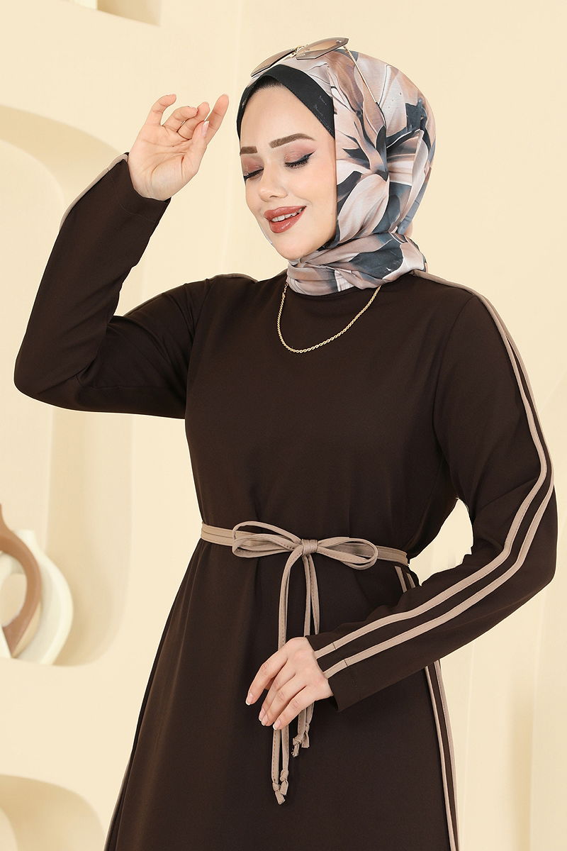 Garnili Dabıl Elbise 2781SL432 Acı Kahve
