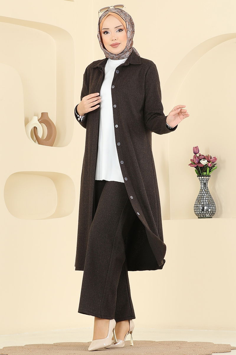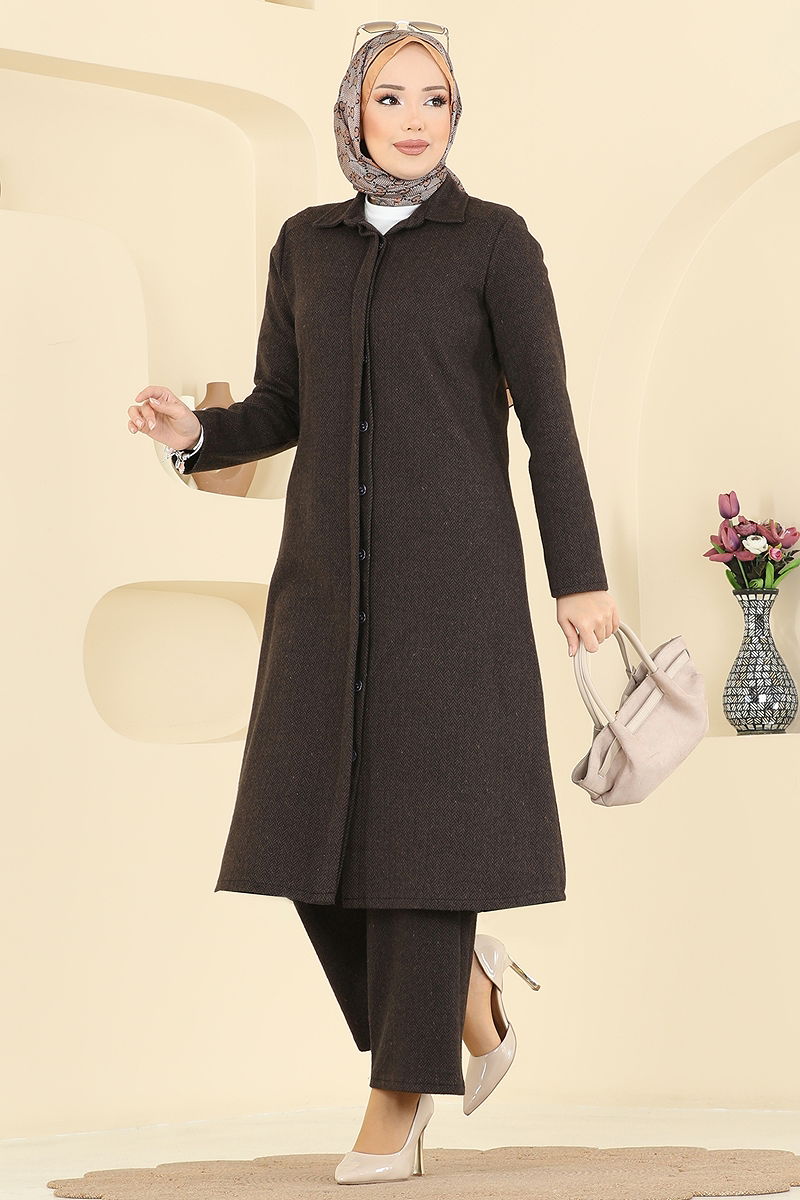 Gizli Düğmeli Balıksırtı Takım Koyu Kahve