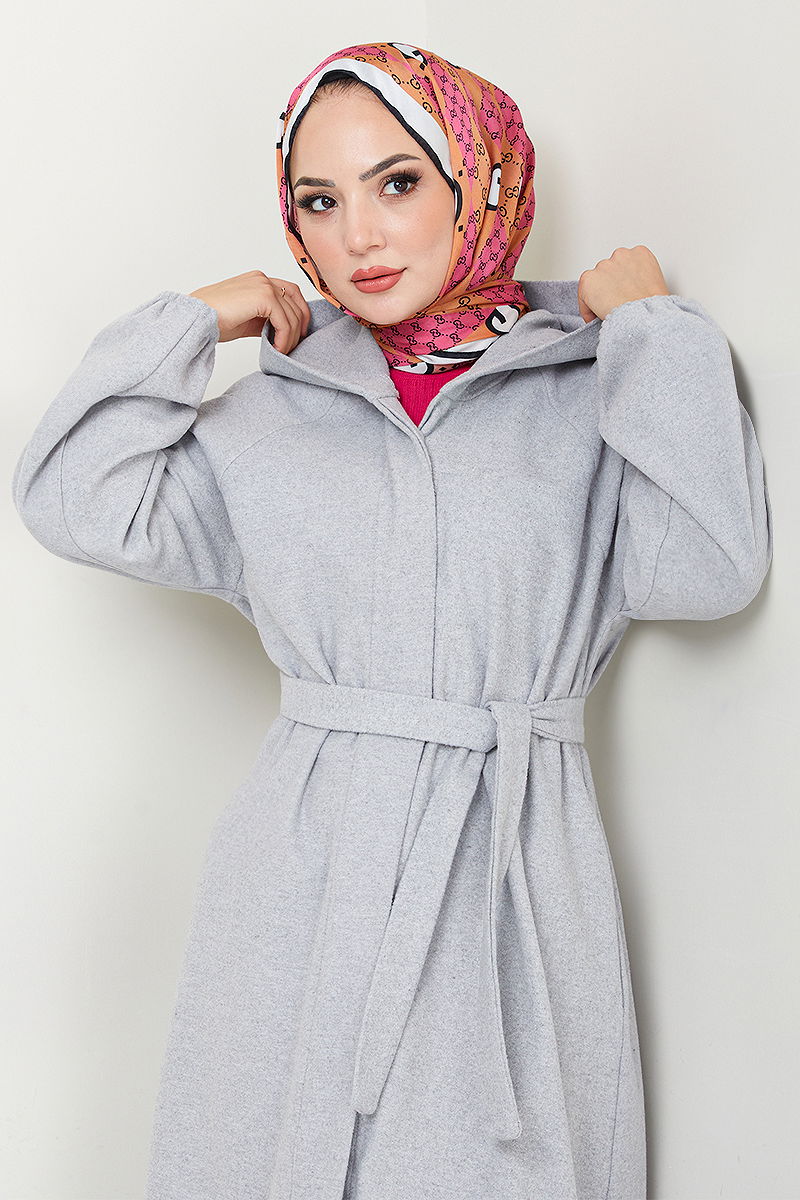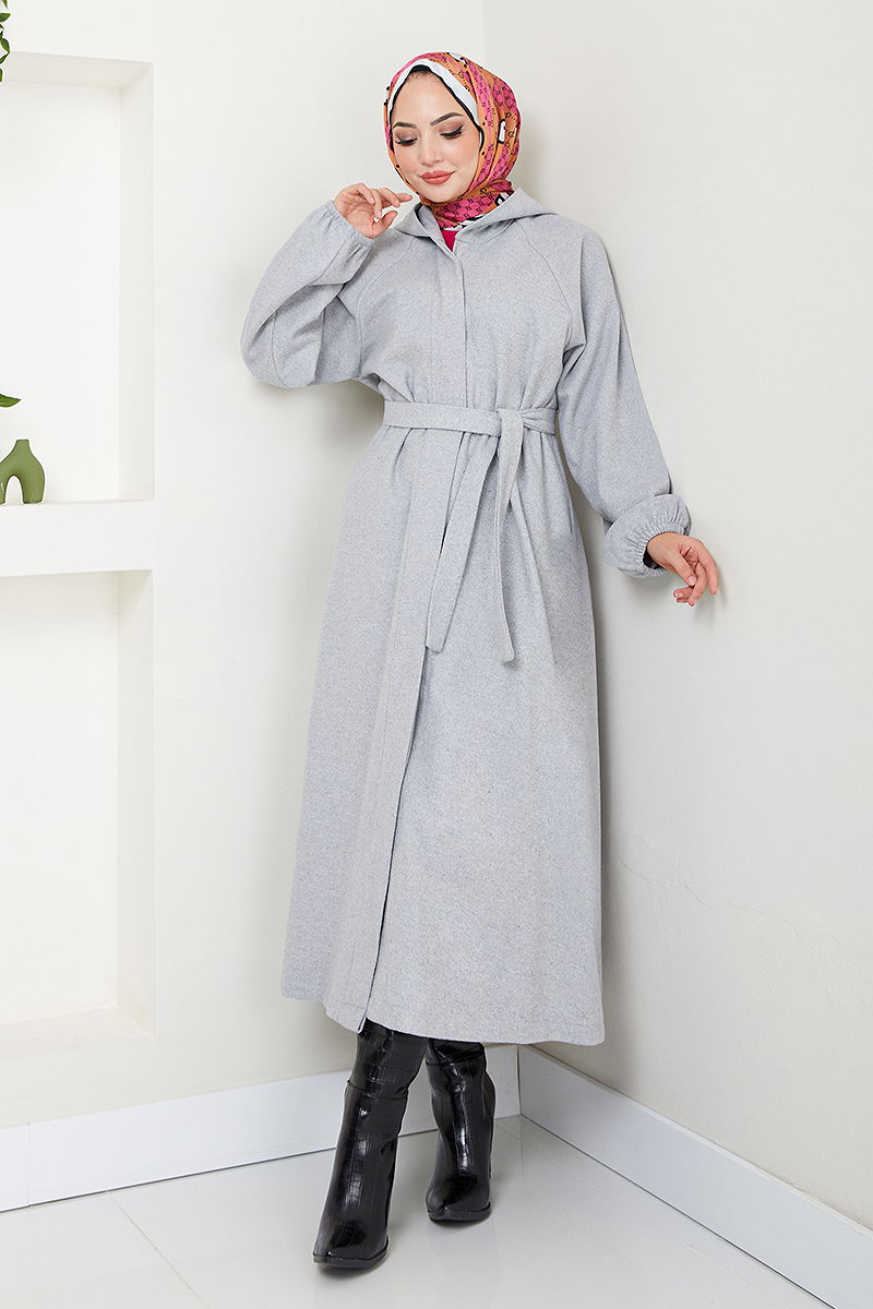 Gizli Düğmeli Kaban model tesettür ürünüdür. Sonbahar ve Kış sezonunda kullanılabilir. 30 derecede sıkma yapılmadan yıkanmalıdır. Birinci sınıf Kaşe kumaştan imal edilmiştir. Ürün Bisiklet yakadır. Astarsızdır. (Modelin üzerindeki ürün 1 bedendir.) Önden kullanılabilir düğmeleri bulunmaktadır. Kemerin dalgalanmaması için iki ucu dikilmiş, orta kısım boş (dikişsiz) bırakılmıştır. Kemer ürüne dahildir, isteğe bağlı kullanılmayabilir. Cep mevcuttur. Manşet lastiklidir.