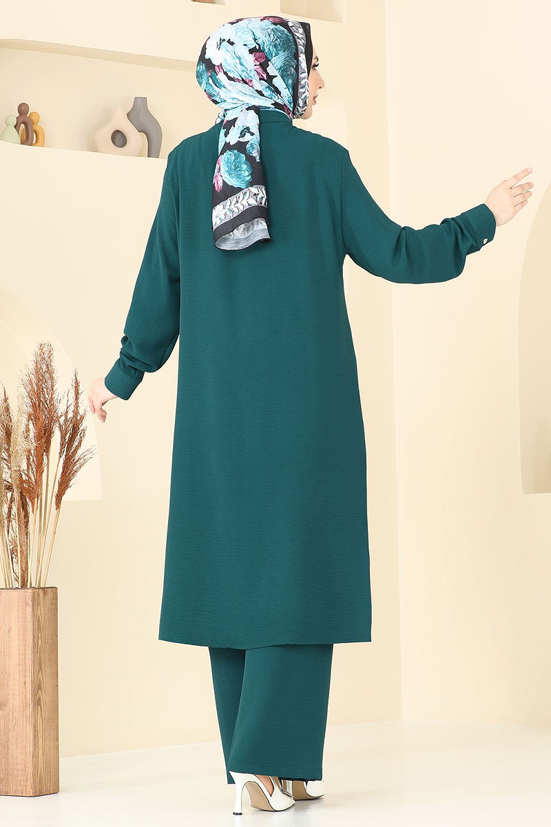 Gizli Düğmeli Tesettür Takım Petrol