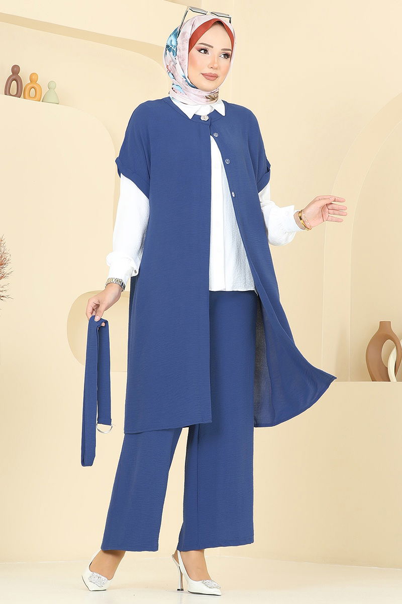 Ürün Özelliği : Yeni sezon tesettür moda ürünüdür. Ürün Gömlek yakadır. Yelek bisiklet yakadır. Ürün Gizli düğmelidir. Astarsızdır. Metal kararmaz aksesuar. Kemer ürüne dahildir, isteğe bağlı kullanılmayabilir. Pantolon beli lastiklidir. Manşet düğmeleri aktiftir. Konsept fotoğraf çekimlerinden dolayı üründe ton farklılığı olabilir.