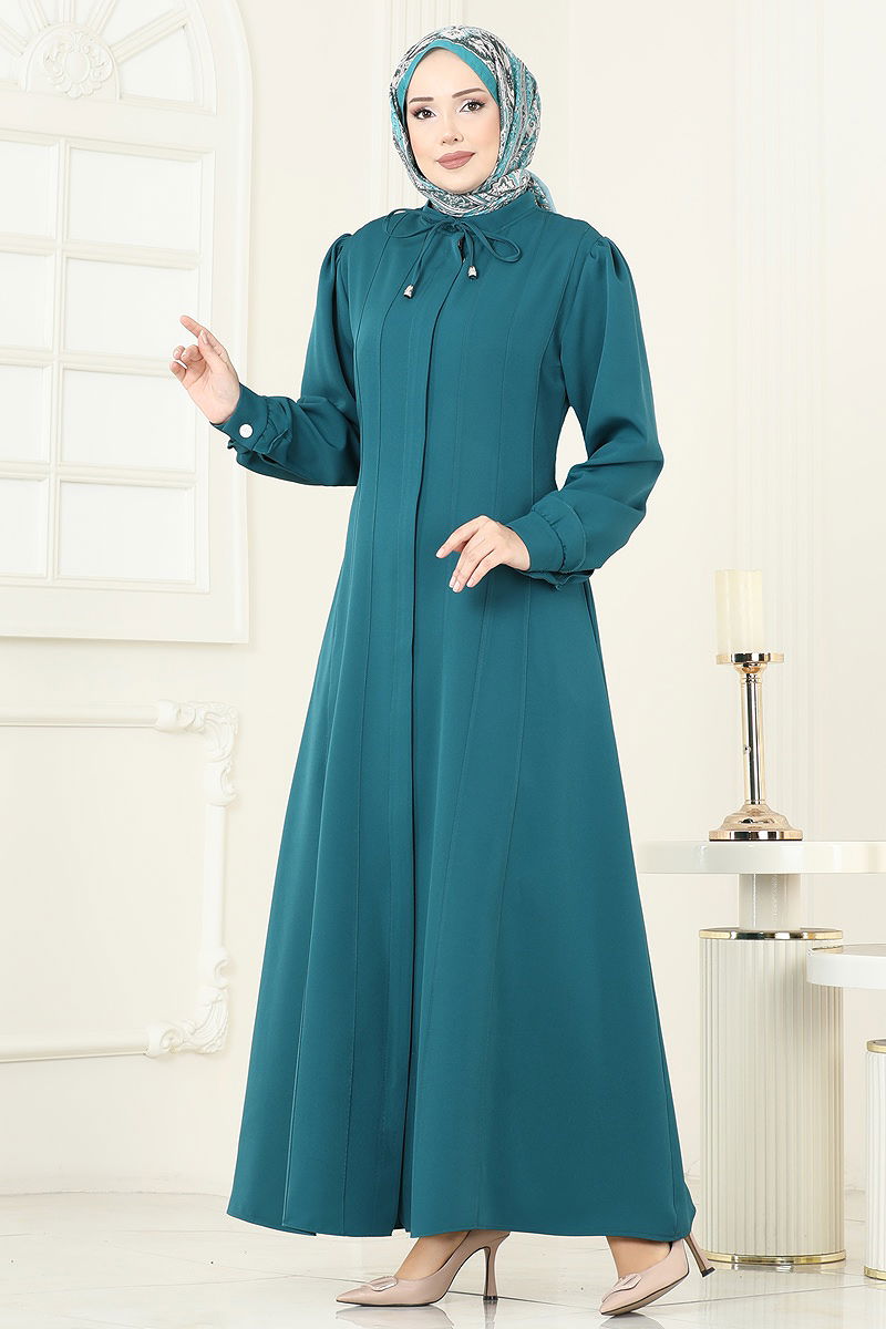 Gizli Fermuarlı Dabıl Ferace PL9191 Petrol