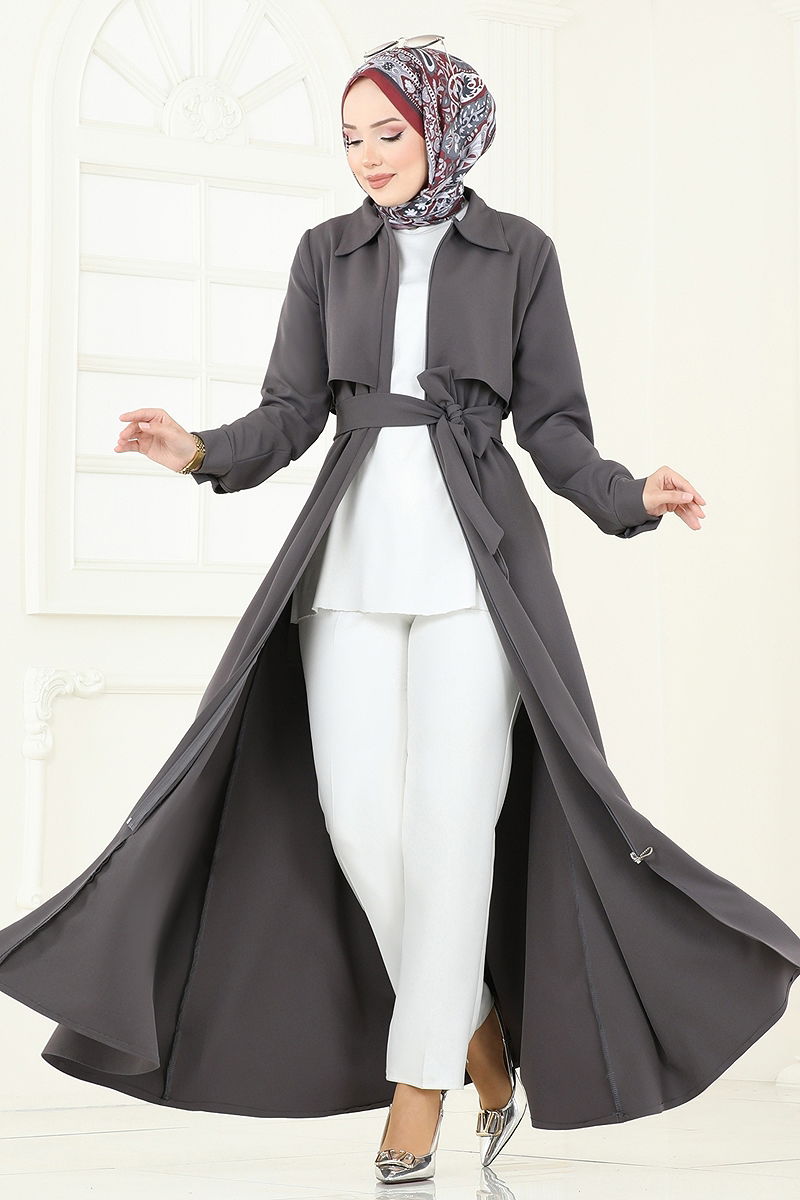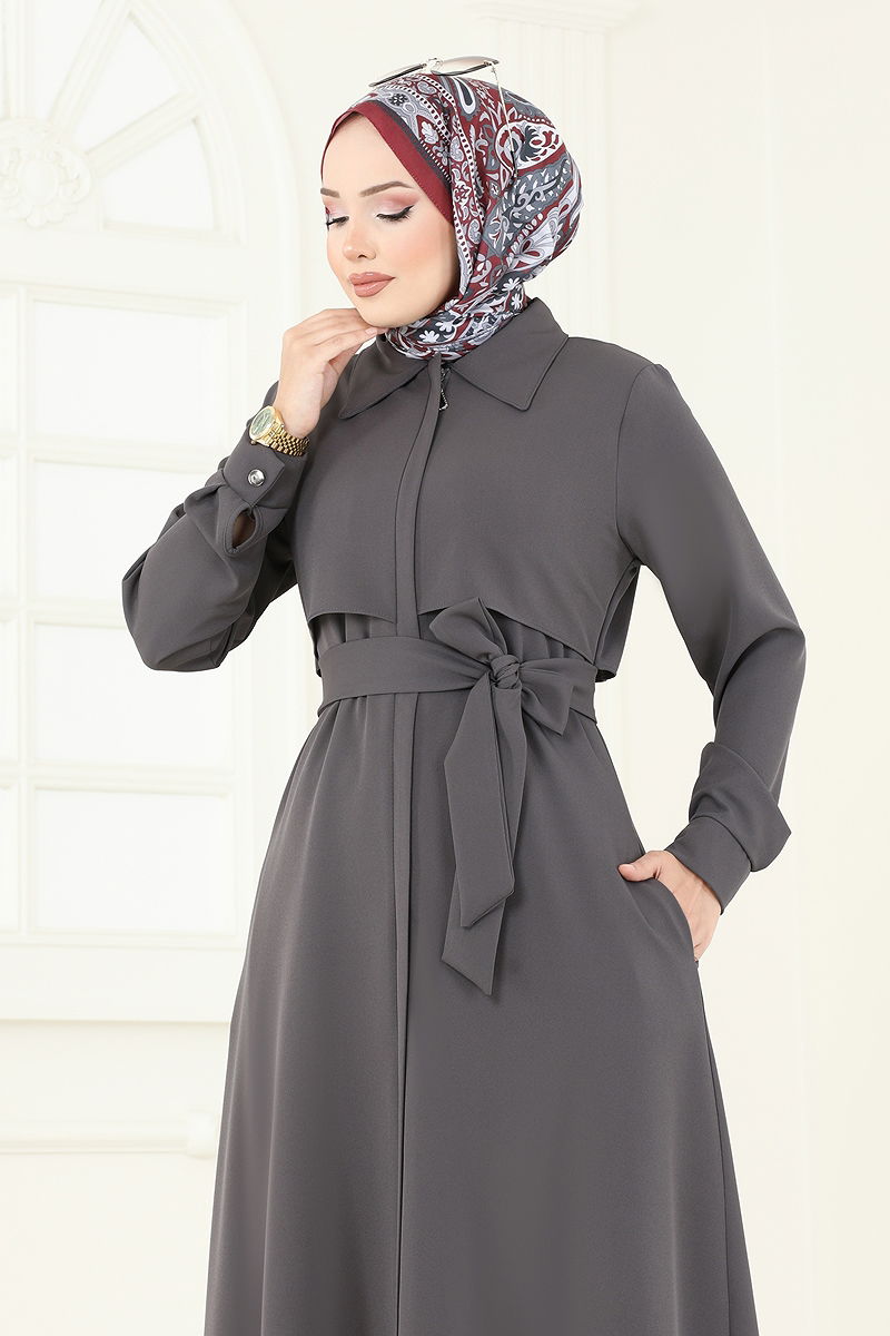 Gizli Fermuarlı Pardesü Ferace Antrasit