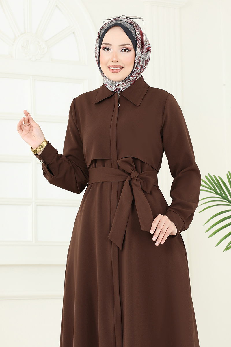 Gizli Fermuarlı Pardesü Ferace Kahve