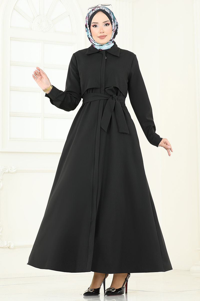 Gizli Fermuarlı Pardesü Ferace Siyah