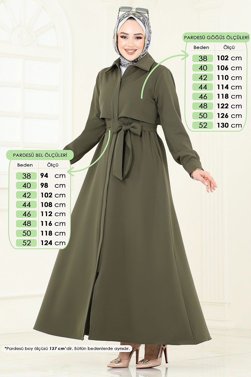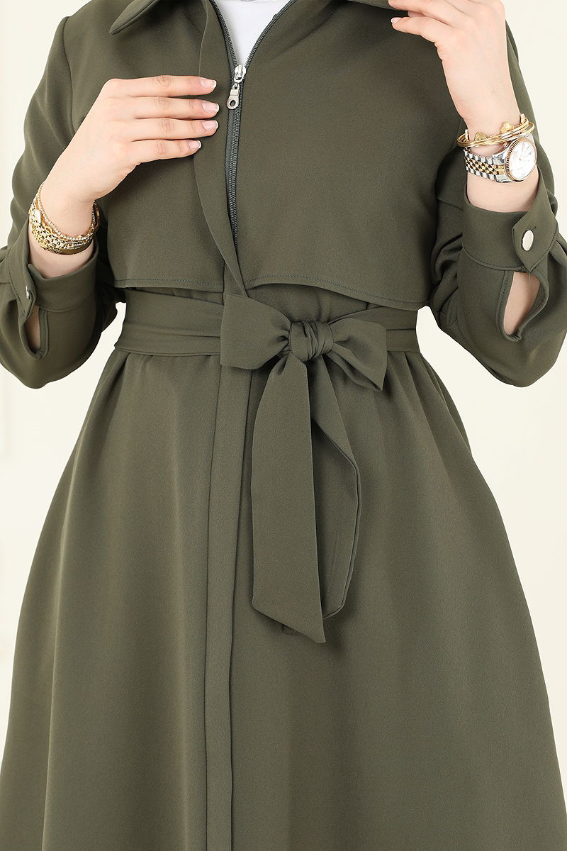 Gizli Fermuarlı Pardesü Ferace Haki