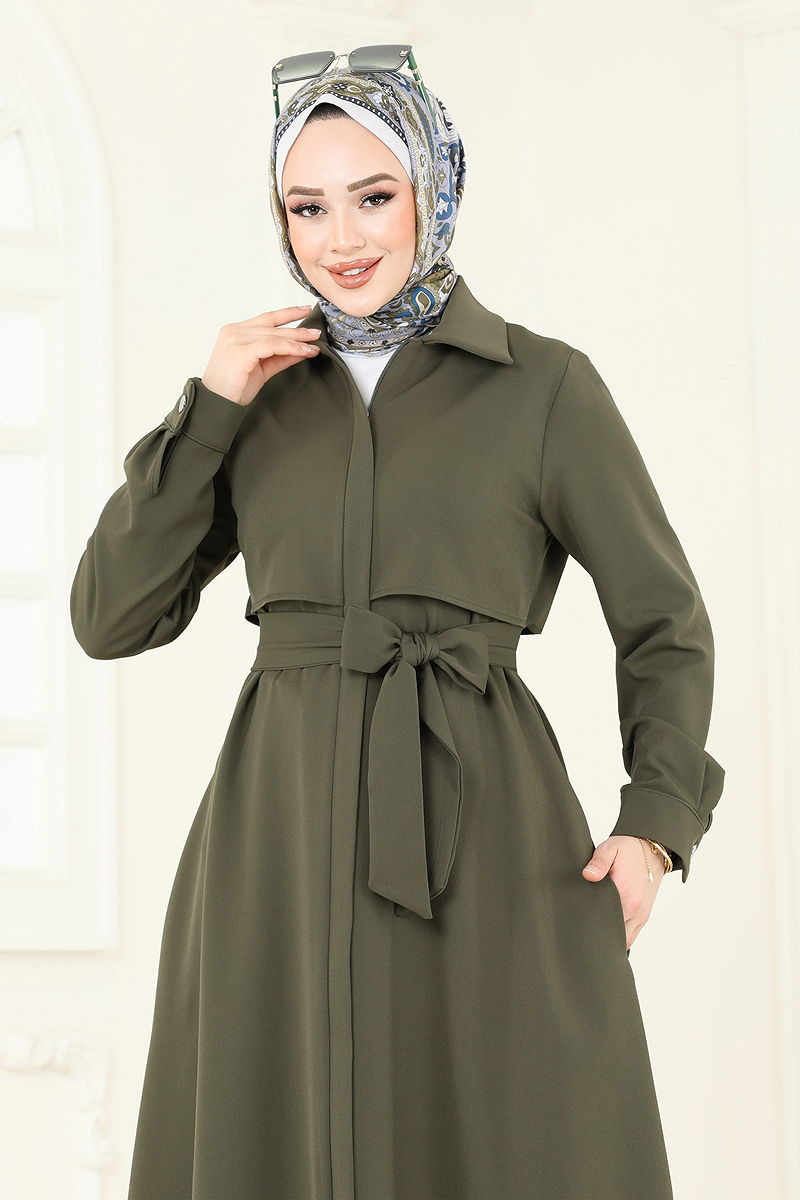 المنتج لديه ياقة القميص. غير مبطنة. المنتج به سحاب في جزء من الأمام. الحزام متضمن، ،يمكن استخدامها حسب الرغبة الملحقات غير متضمنة. الجيب متاح. أزرار الكفة نشطة. قد يكون هناك اختلاف في الدرجة اللونية في المنتج بسبب التقاط الصور الفوتوغرافية.