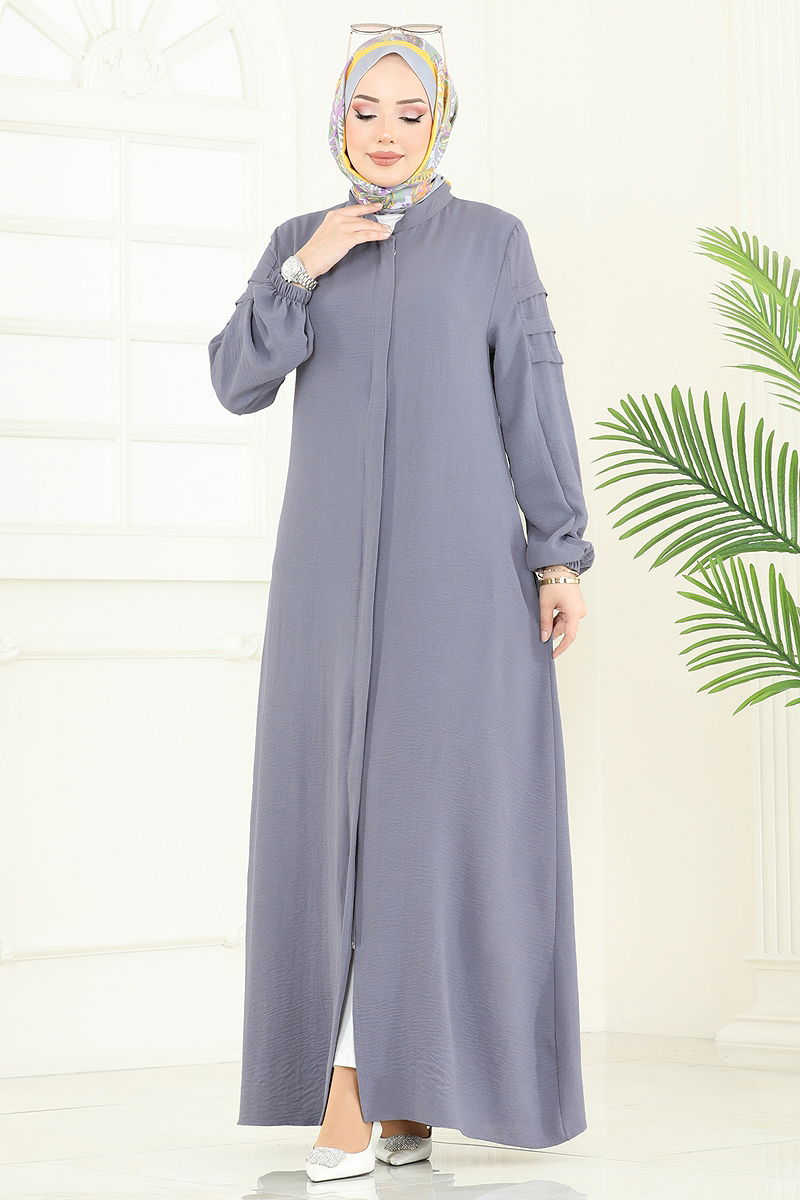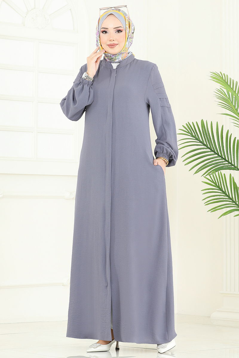Gizli Fermuarlı Pardesü Ferace 390DVL817 Gri