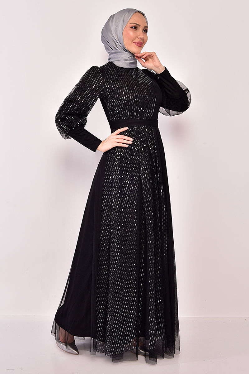 Glitter Transition Hijab Evening Dress ASM2457-M Black
