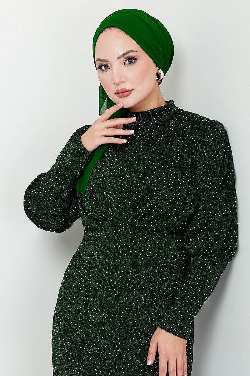 Göğsü Drapeli Tesettür Abiye 5469END900-M Zümrüt