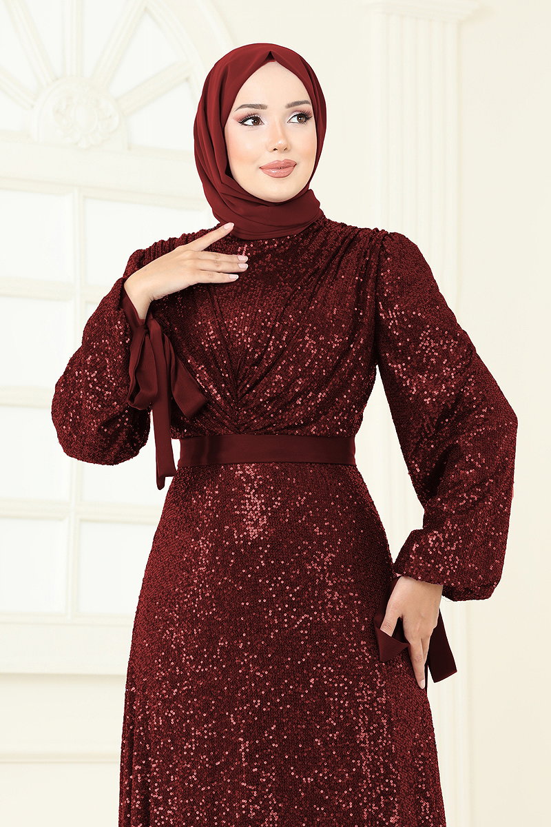Göğsü Drapeli Tesettür Abiye 5690EDF311 Bordo
