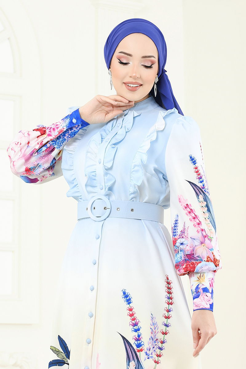 SUAL Göğsü Fırfırlı Atlas Elbise Mavi Özellikleri