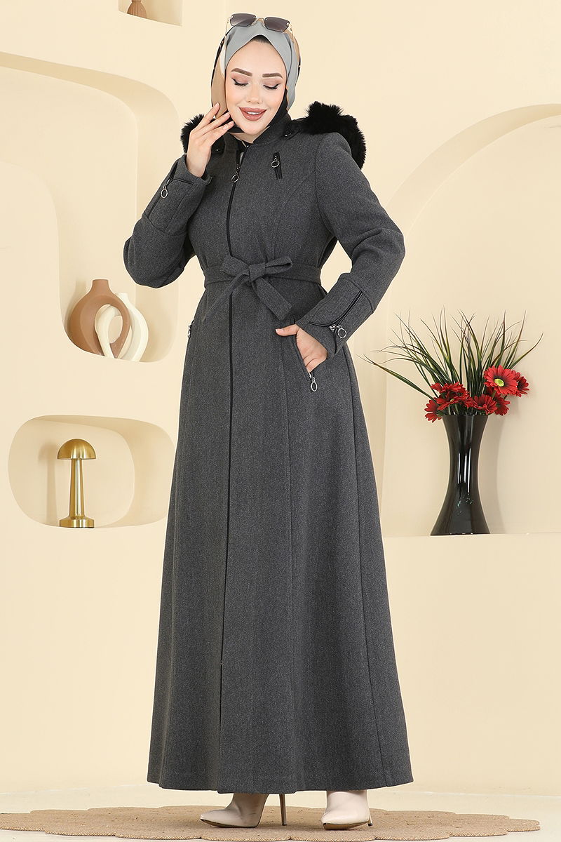 Ürün Özelliği : Yeni sezon tesettür moda ürünüdür. Kapüşon seyyardır, isteğe bağlı kullanılmayabilir. Ürün Yarım Hakim yakadır. Astarlıdır. Ürün Önden fermuarlıdır. Kapşon kürkü ürüne dikilidir. Arma detayı dikilidir. Kemer ürüne dahildir, isteğe bağlı kullanılmayabilir. Cep mevcuttur. Manşet fermuarları aksesuardır. Konsept fotoğraf çekimlerinden dolayı üründe ton farklılığı olabilir.
