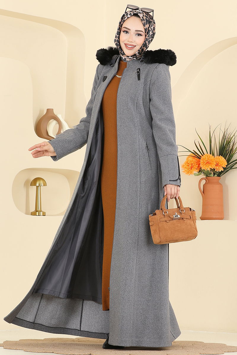 Ürün Özelliği : Yeni sezon tesettür moda ürünüdür. Kapüşon seyyardır, isteğe bağlı kullanılmayabilir. Ürün Yarım Hakim yakadır. Astarlıdır. Ürün Önden fermuarlıdır. Kapşon kürkü ürüne dikilidir. Arma detayı dikilidir. Kemer ürüne dahildir, isteğe bağlı kullanılmayabilir. Cep mevcuttur. Manşet fermuarları aksesuardır. Konsept fotoğraf çekimlerinden dolayı üründe ton farklılığı olabilir.