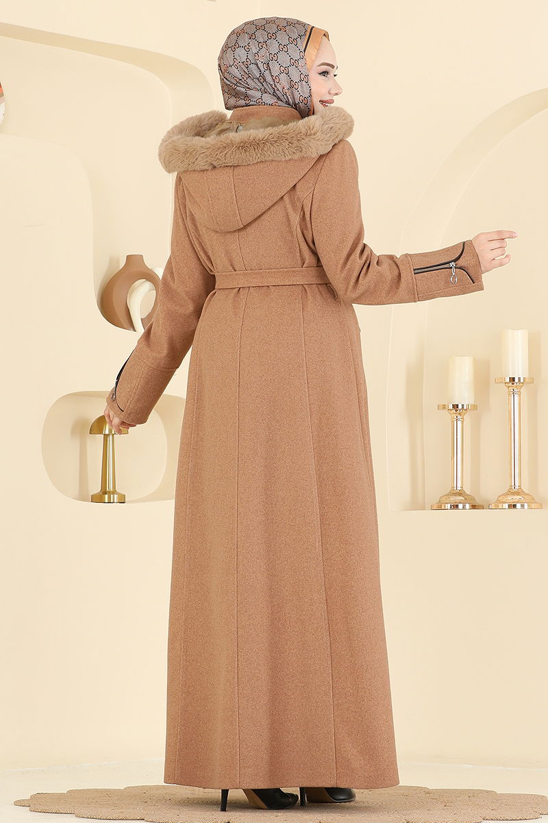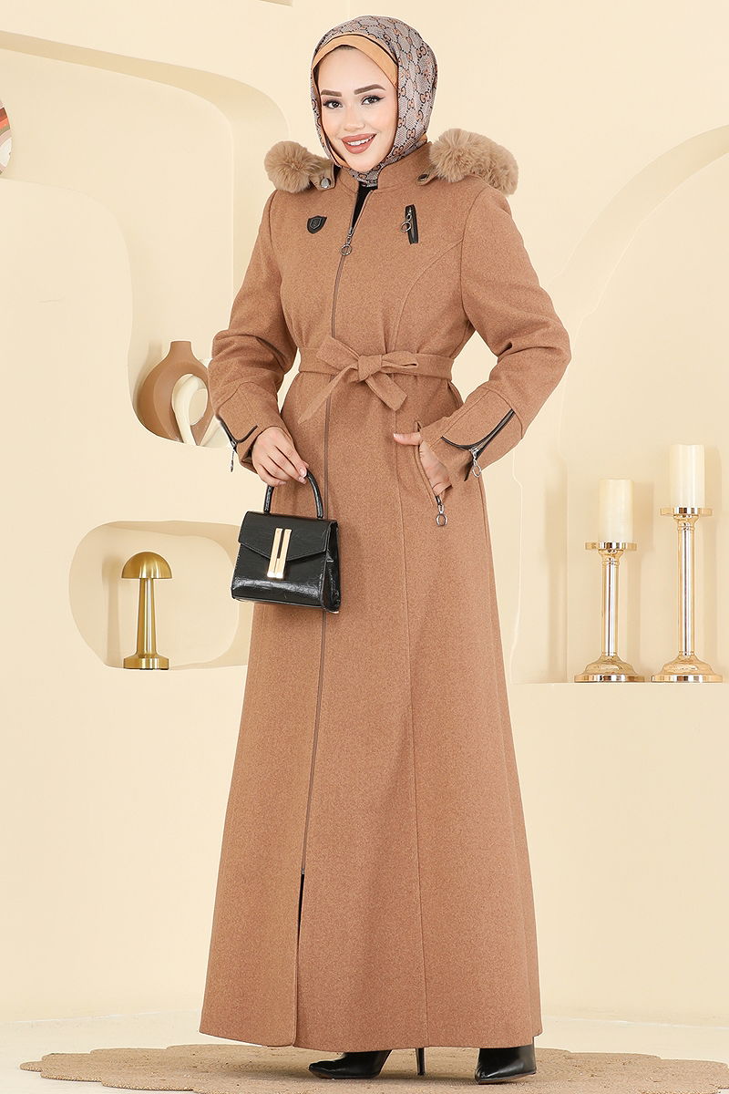 Ürün Özelliği : Yeni sezon tesettür moda ürünüdür. Kapüşon seyyardır, isteğe bağlı kullanılmayabilir. Ürün Yarım Hakim yakadır. Astarlıdır. Ürün Önden fermuarlıdır. Kapşon kürkü ürüne dikilidir. Arma detayı dikilidir. Kemer ürüne dahildir, isteğe bağlı kullanılmayabilir. Cep mevcuttur. Manşet fermuarları aksesuardır.Konsept fotoğraf çekimlerinden dolayı üründe ton farklılığı olabilir.