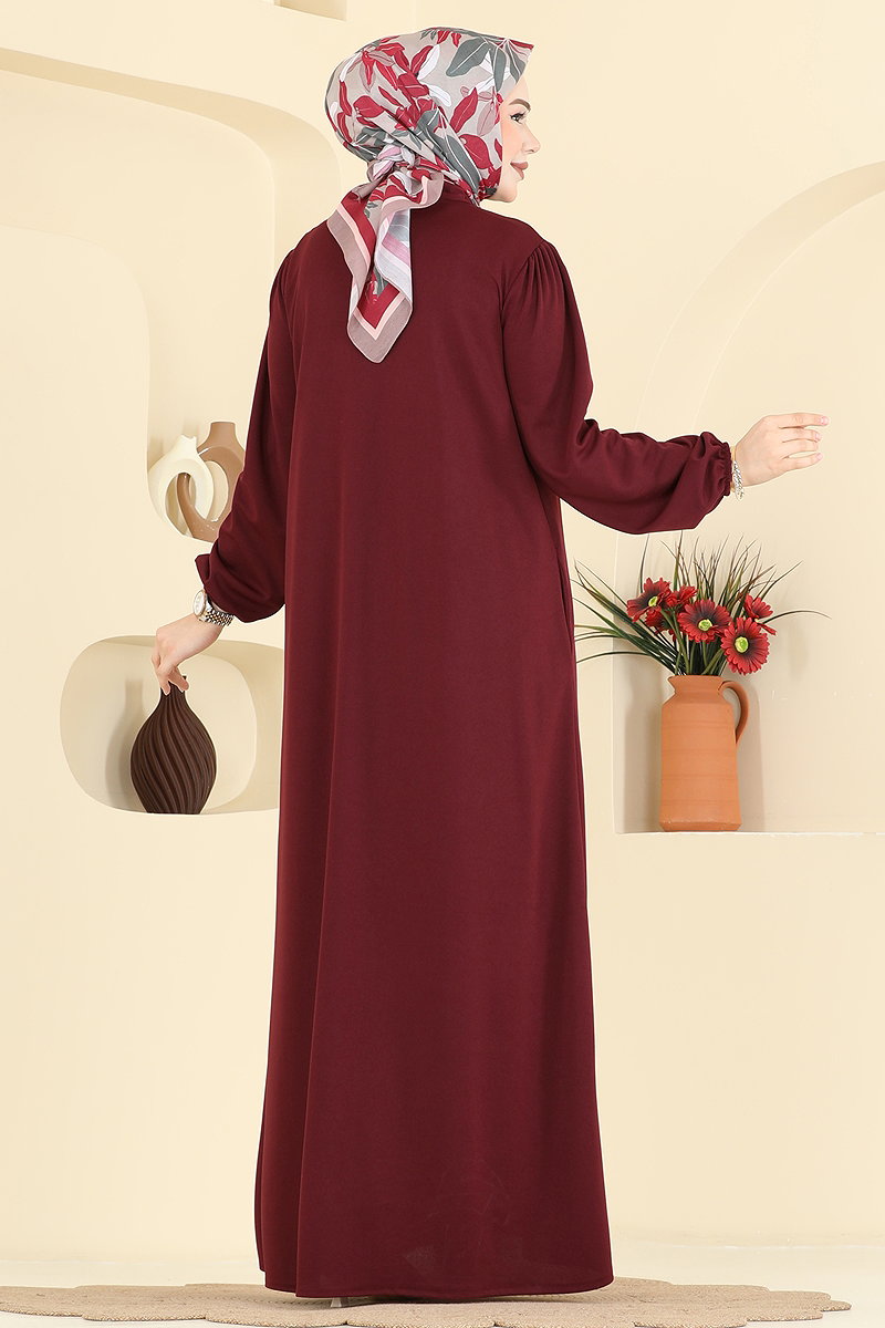 Göğüsü Fırfır Detaylı Ferace 24031UKB139 Bordo