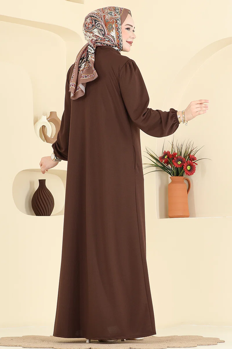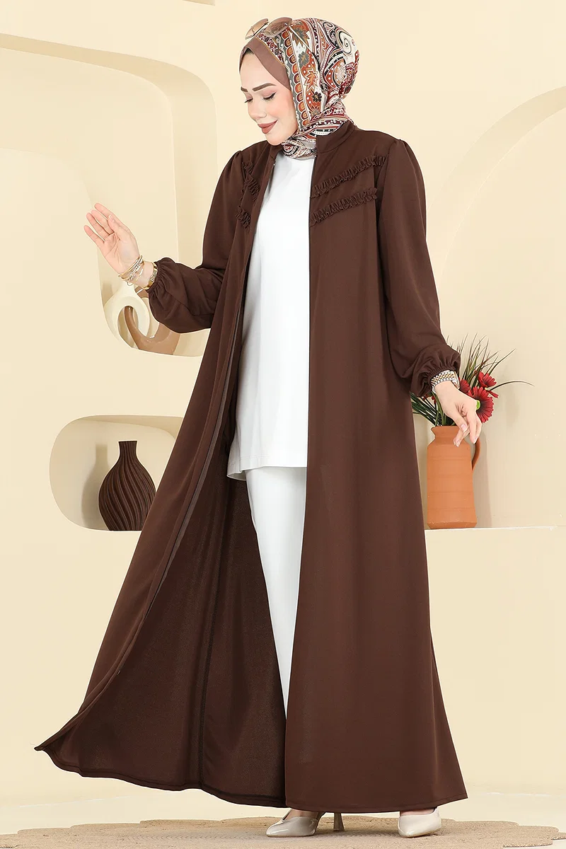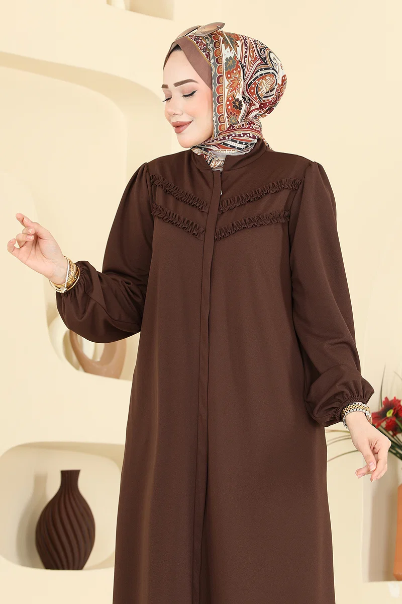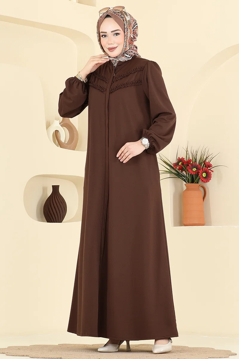 Göğüsü Fırfır Detaylı Ferace 24031UKB139 Kahve