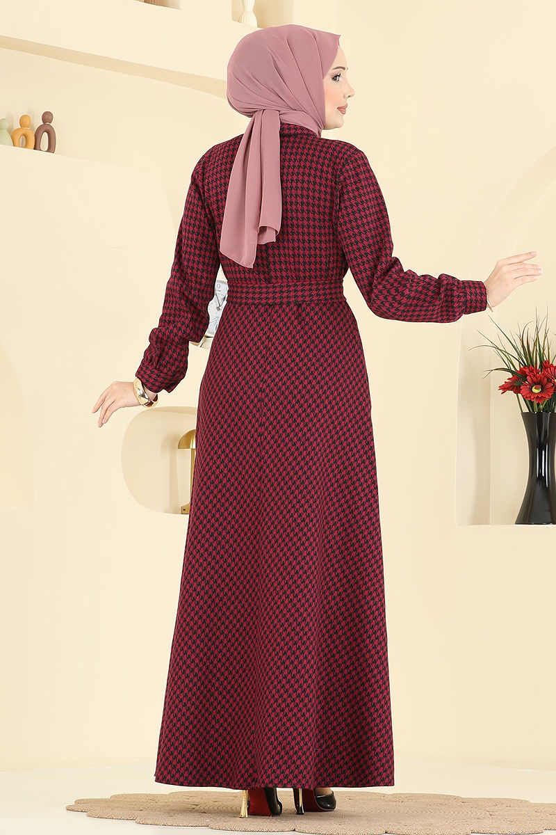 Gold Düğme Detaylı Elbise 4129PM271 Bordo