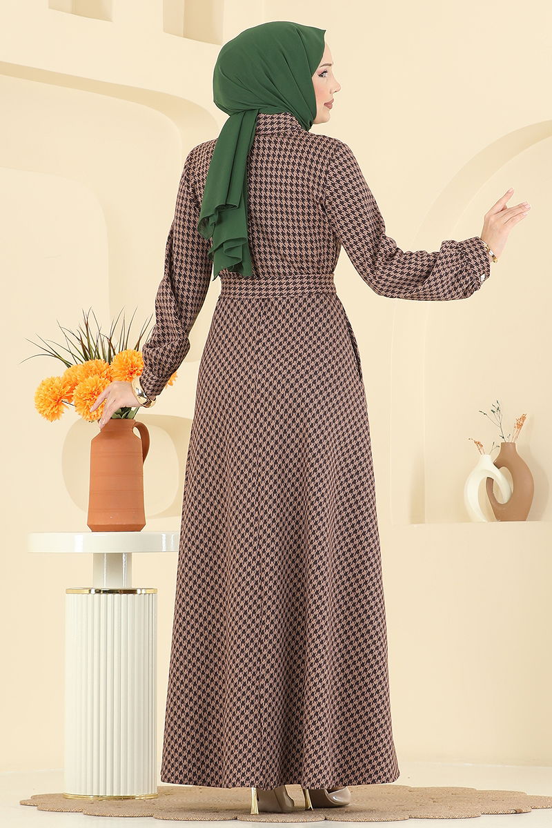 Gold Düğme Detaylı Elbise Latte
