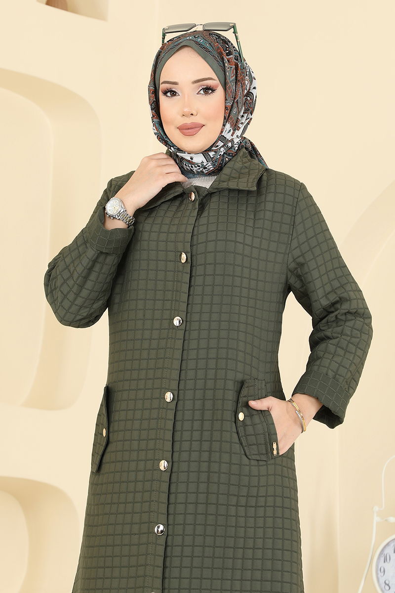 Gold Düğme Detaylı Kap Haki