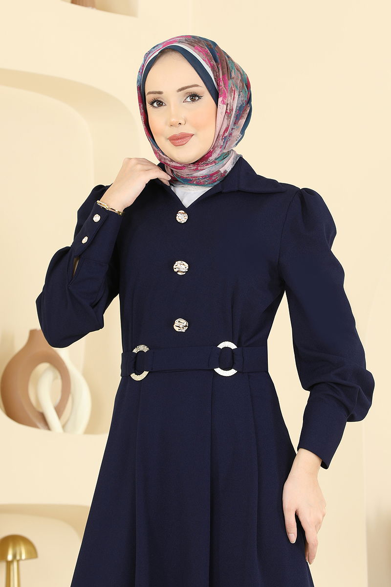 Şıklığı ve konforu bir arada sunan Gold Düğmeli Elbise, tesettür giyimde yeni bir soluk getiriyor. Dört mevsim rahatlıkla kullanabileceğiniz bu elbise, hassas yıkama ile 30 derecede yıkanabilir özelliğe sahip. Scuba kumaşı sayesinde formunu uzun süre korurken, gömlek yaka ve ön düğmeli tasarımı ile pratik bir kullanım sunar. Sabit kemer ve aktif manşet düğmeleri ile detaylandırılan elbise, hem günlük kullanımınızda hem de özel günlerinizde ideal bir tercih olacaktır.