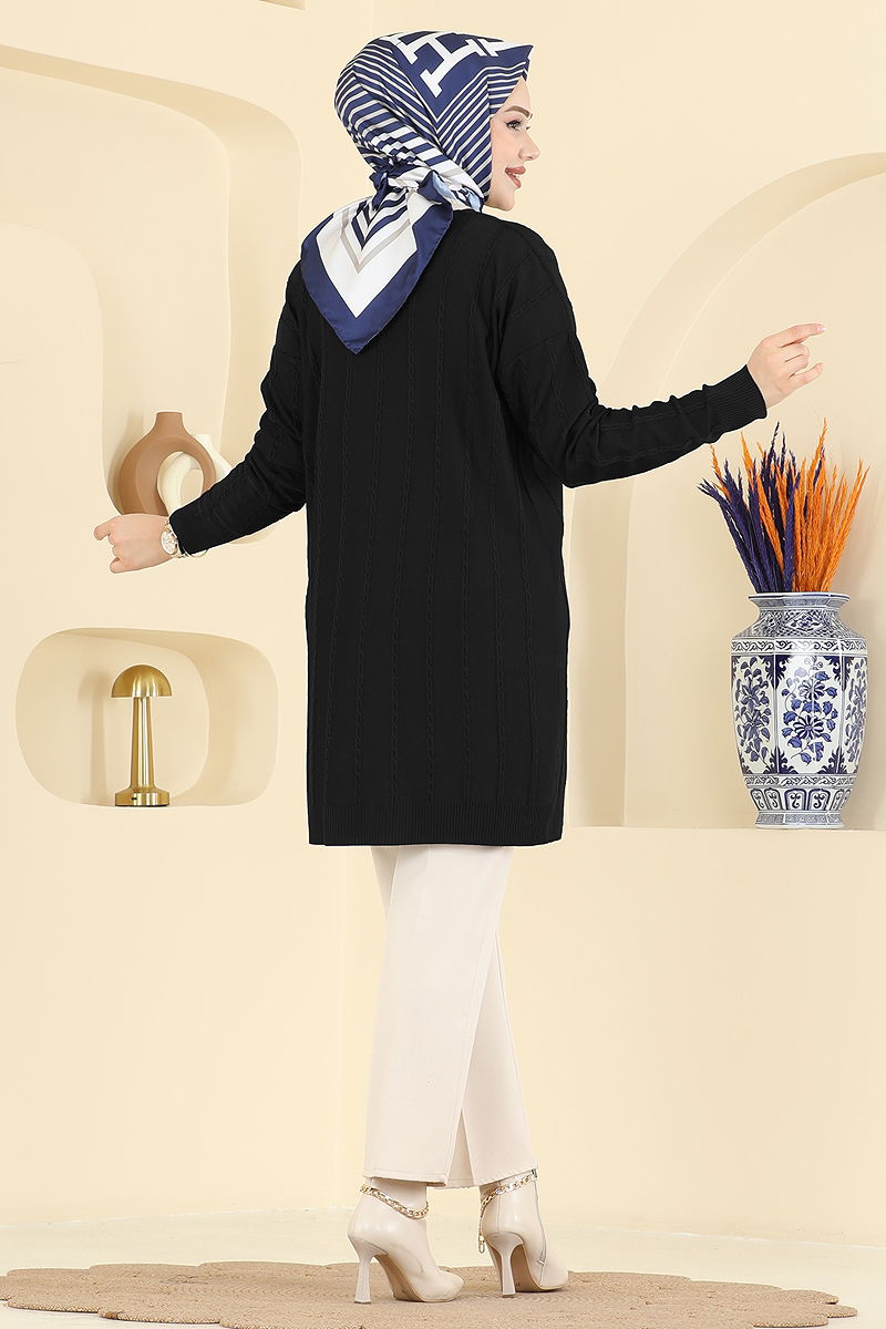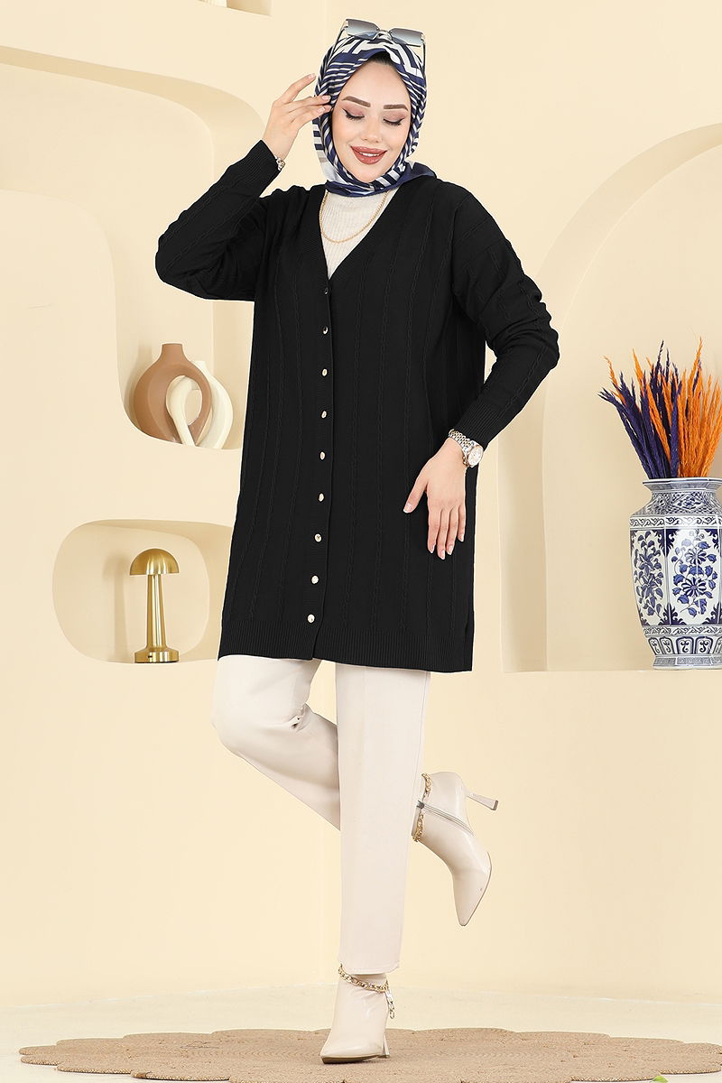 Gold Düğmeli Merserize Hırka Siyah